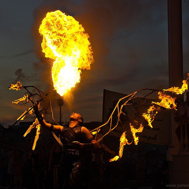 Мистические танцы пламени взбудоражат Ваше сознание и Вы просто не сможете отвести свои взгляды от бушующей огненной силы, укрощенной умелыми руками наших артистов.